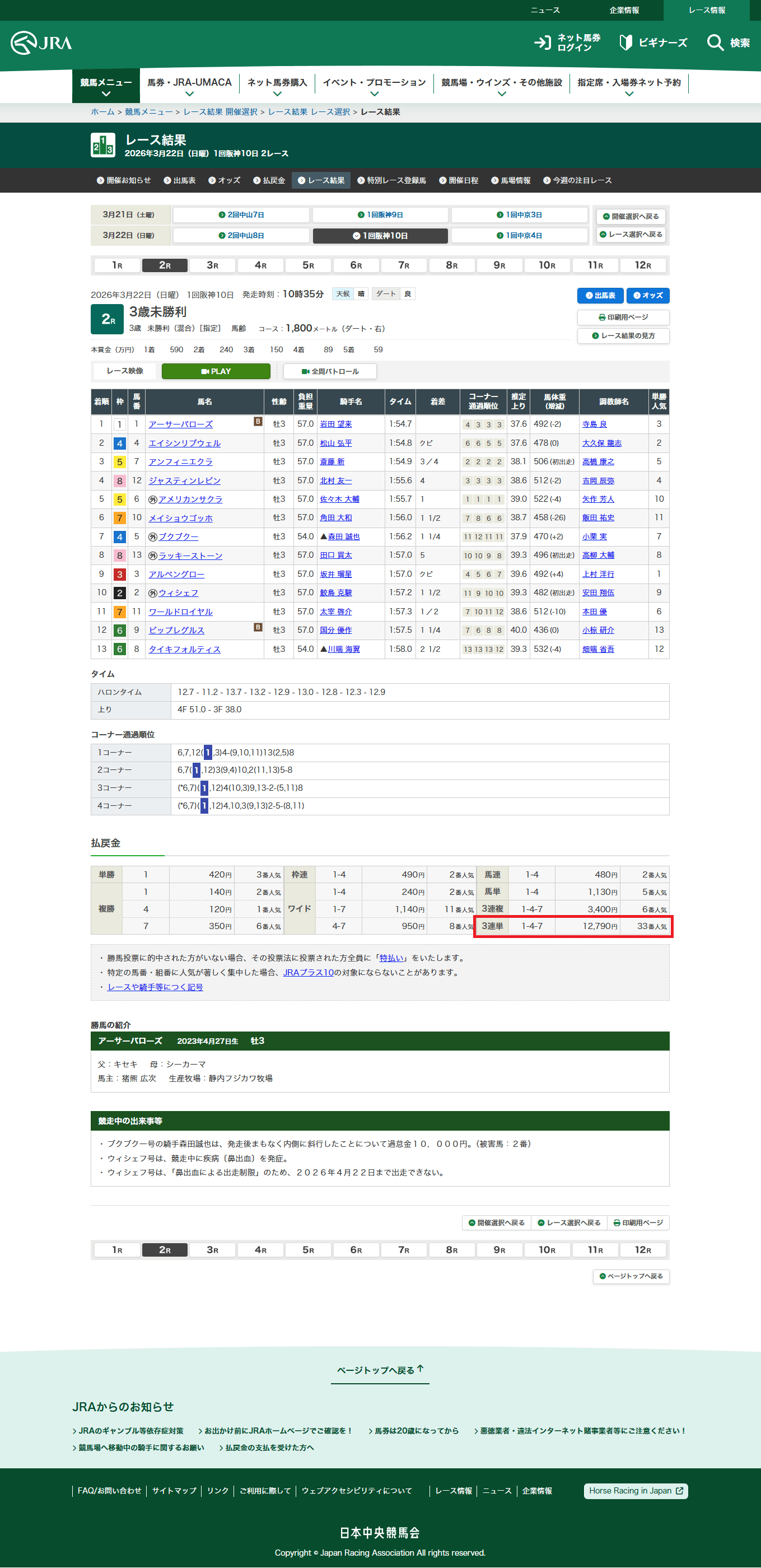 今年はアドマイヤテラが1番人気に応えて快勝。勝ち時計3分2秒0のコースレコードで、2着アクアヴァーナル、3着ダノンシーマという決着になりました。