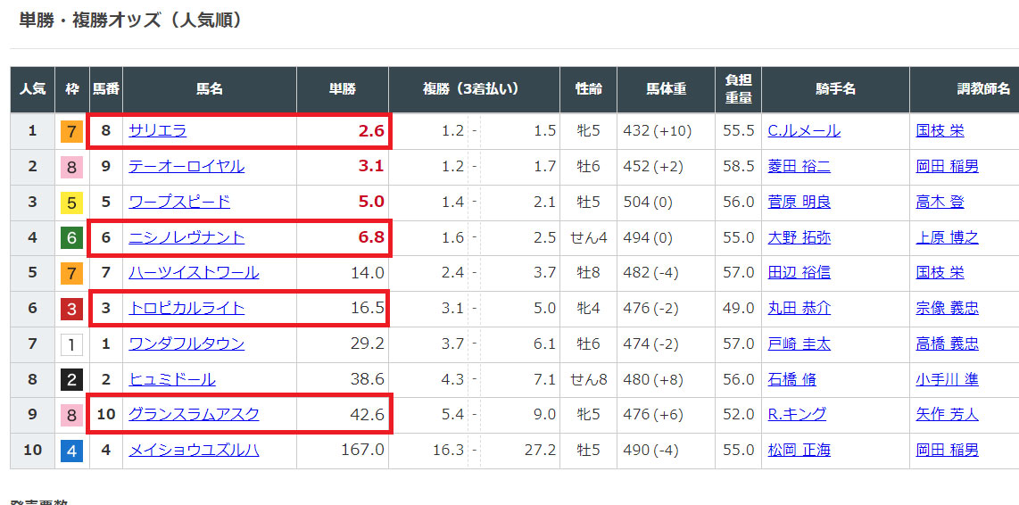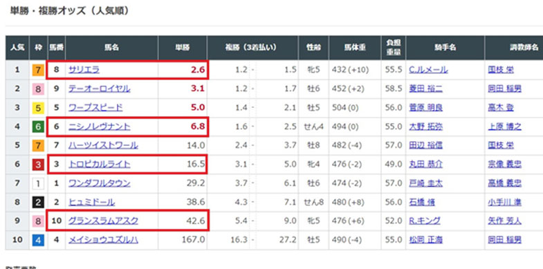 1番人気のサリエラは2着に来ましたが、相手が1頭も来ず不的中になりました。