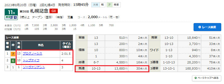 選んでいる馬の人気を見てみると2番人気を切った上位人気と穴馬数頭選んでいました。札幌記念もオッズが割れているので当たれば美味しいオッズがつきそうですね!