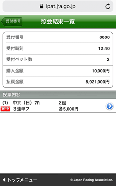 競馬場にて購入しており、手が震えて頭が真っ白になっていましたが、人生初の帯封を手にしました。。