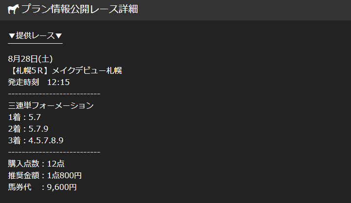 新馬戦で73万5280的中しました! 3連単払戻が919.1倍、もうちょいで夢の10万馬券GETだった!惜しい!!! こんな神予想を1万以下の馬券代で的中させるアルケミストの情報は本物ですね!