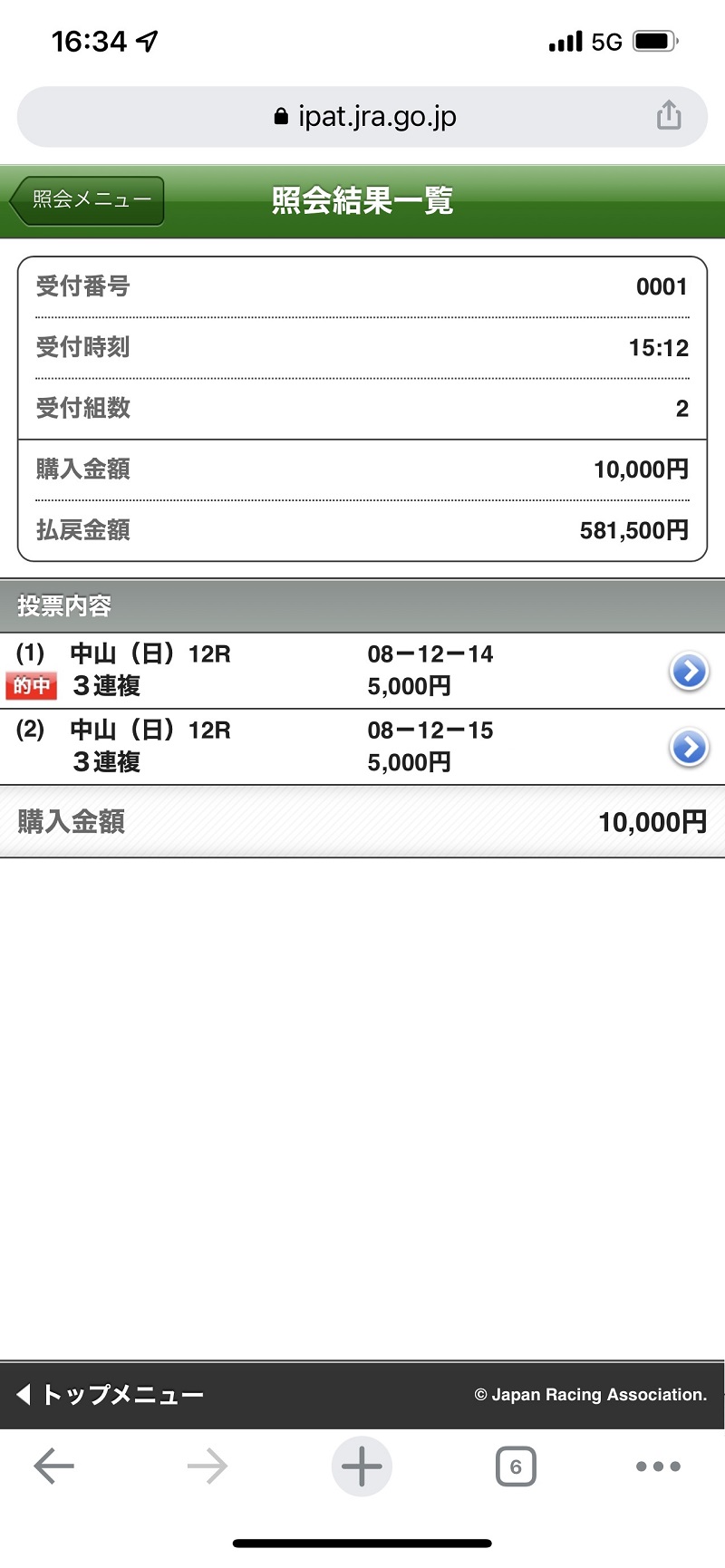 581,500円的中まじでありがたかった、競馬で勝てなかったり予想に行き詰まったらコースさんの買い目参考にするとこのように勝てますよ\(^o^)/