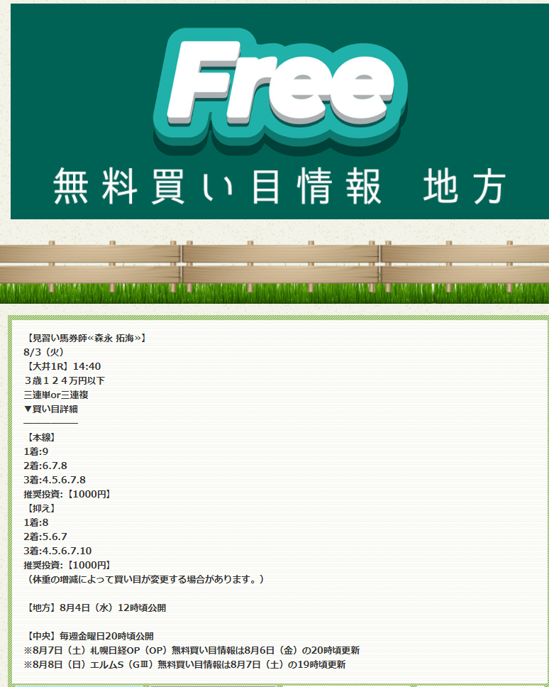8/3の無料買い目大井1Rで三連単931,500円&三連複273,200円ダブル的中貰いました!