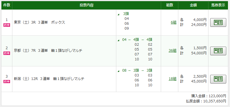 3連複のボックス買いで8万馬券と2万馬券それぞれ当たったんだけどえぐすぎる