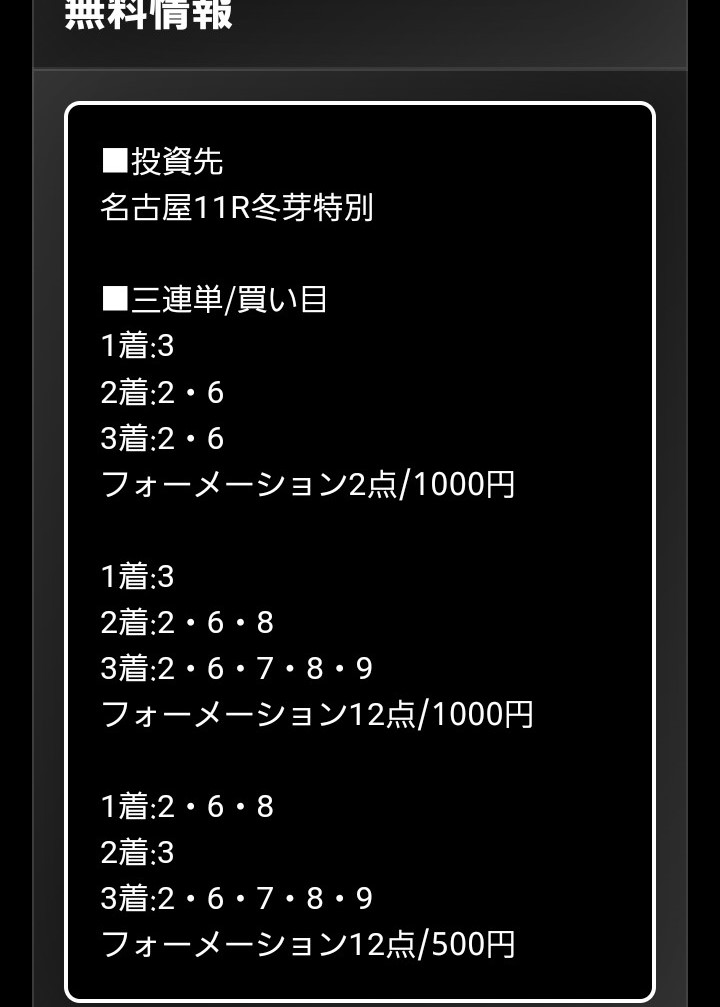 少点数買い目のご提供!