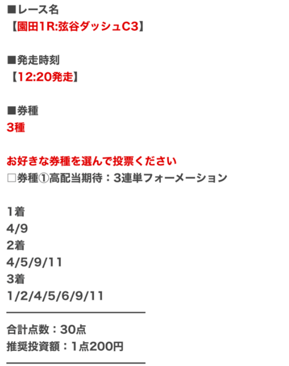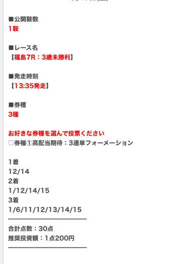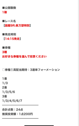 少点数買い目のご提供!