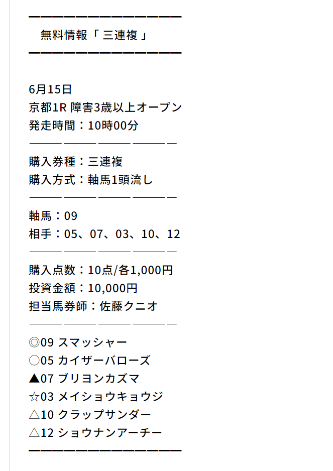 もうこれ軸馬からしてだめやんけ