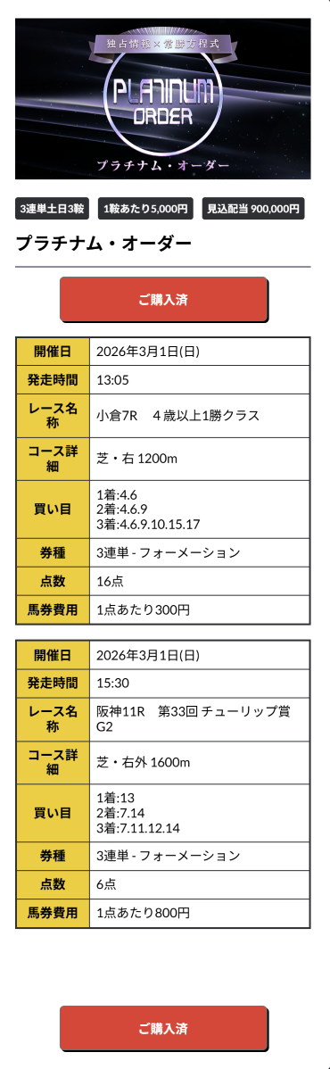 小倉大賞典予想的中ありがとうございました。 買い目画像もPAT画像もスクショ撮り忘れてしまったけど 711倍を3連単10点1点500円で的中 35万5500円、回収率も異常な数値… 先週知ったけど、平場も多めに予想出しているし、今週は先週以上に稼げそうな感じだな。